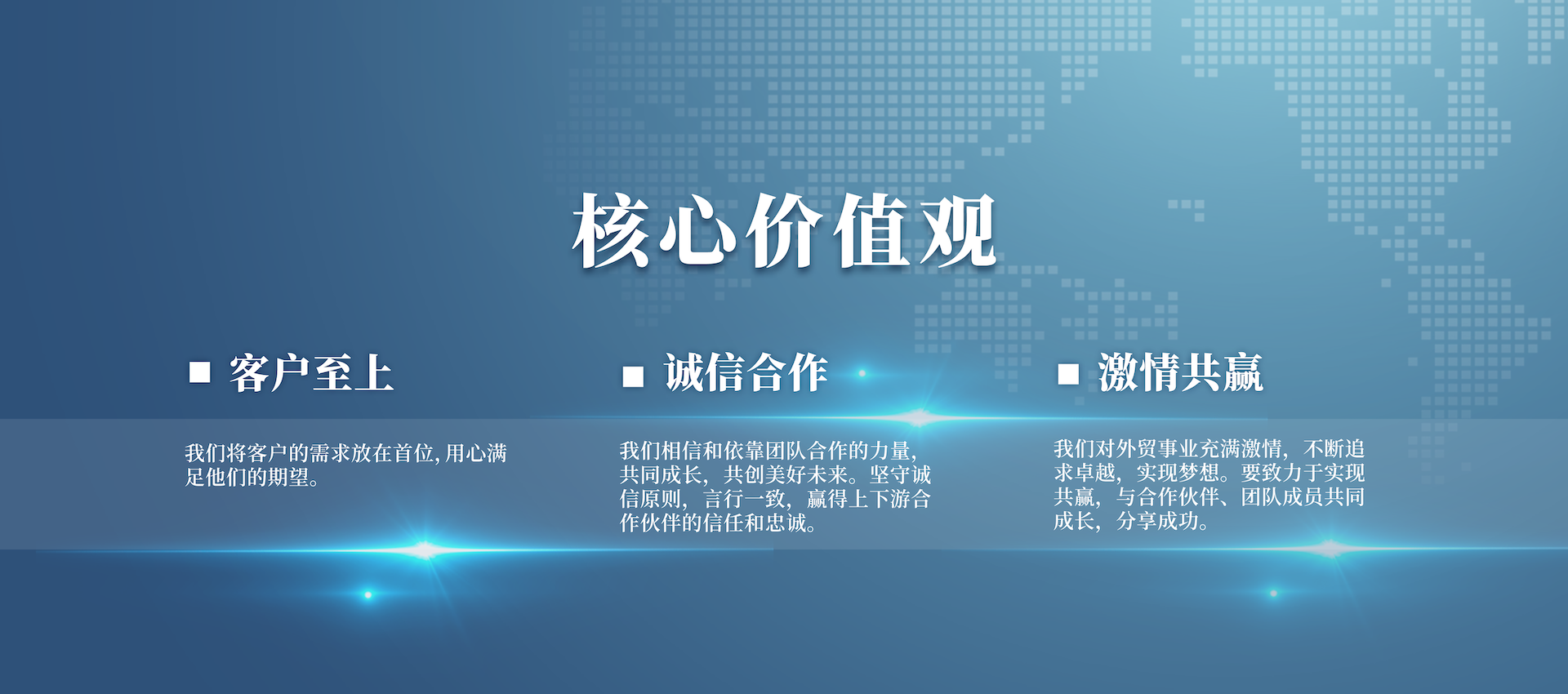 公司從成立伊始就緊緊圍繞外貿(mào)主業(yè),充分發(fā)揮擁有國際營銷渠道及掌握國際市場信息的優(yōu)勢,著力優(yōu)化業(yè)務(wù)結(jié)構(gòu),轉(zhuǎn)變增長方式,提高經(jīng)營質(zhì)量,強化以客戶需求為原動力的供應(yīng)鏈管理,建設(shè)出口商品生產(chǎn)基地。公司力爭發(fā)展成為以外貿(mào)為龍頭、實業(yè)為基礎(chǔ)、科技為依托,貿(mào)工技一體化發(fā)展的一流國際經(jīng)貿(mào)企業(yè)。